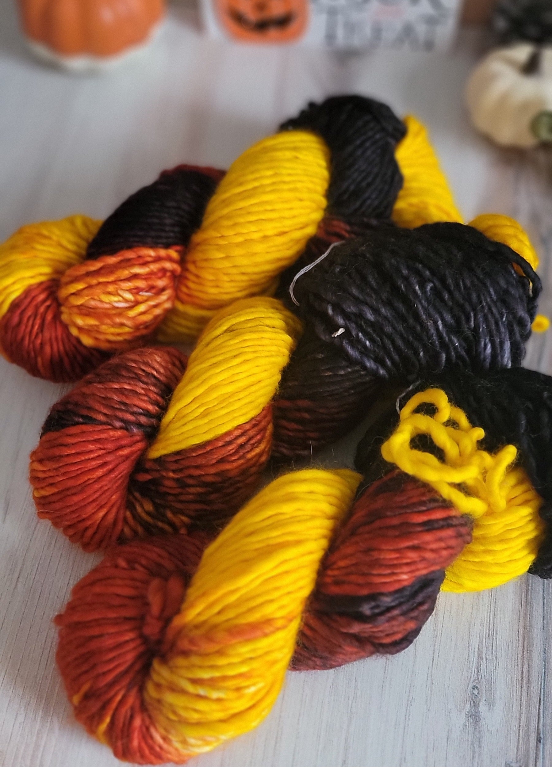 This listing is for one skein of hand dyed super bulky LITE weight, Superwash Merino wool blend with nylon.