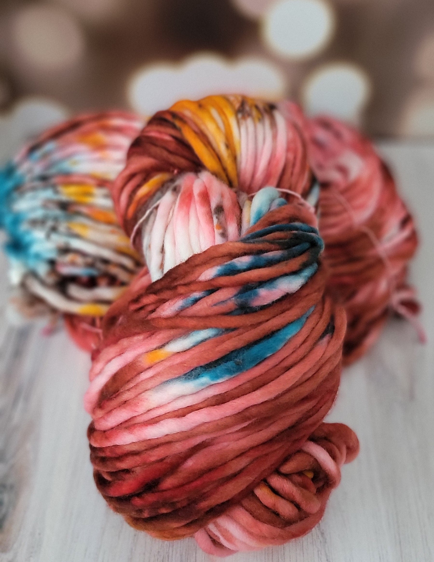 This is a listing for one skein of hand dyed super bulky weight, 100% Superwash Merino wool.
