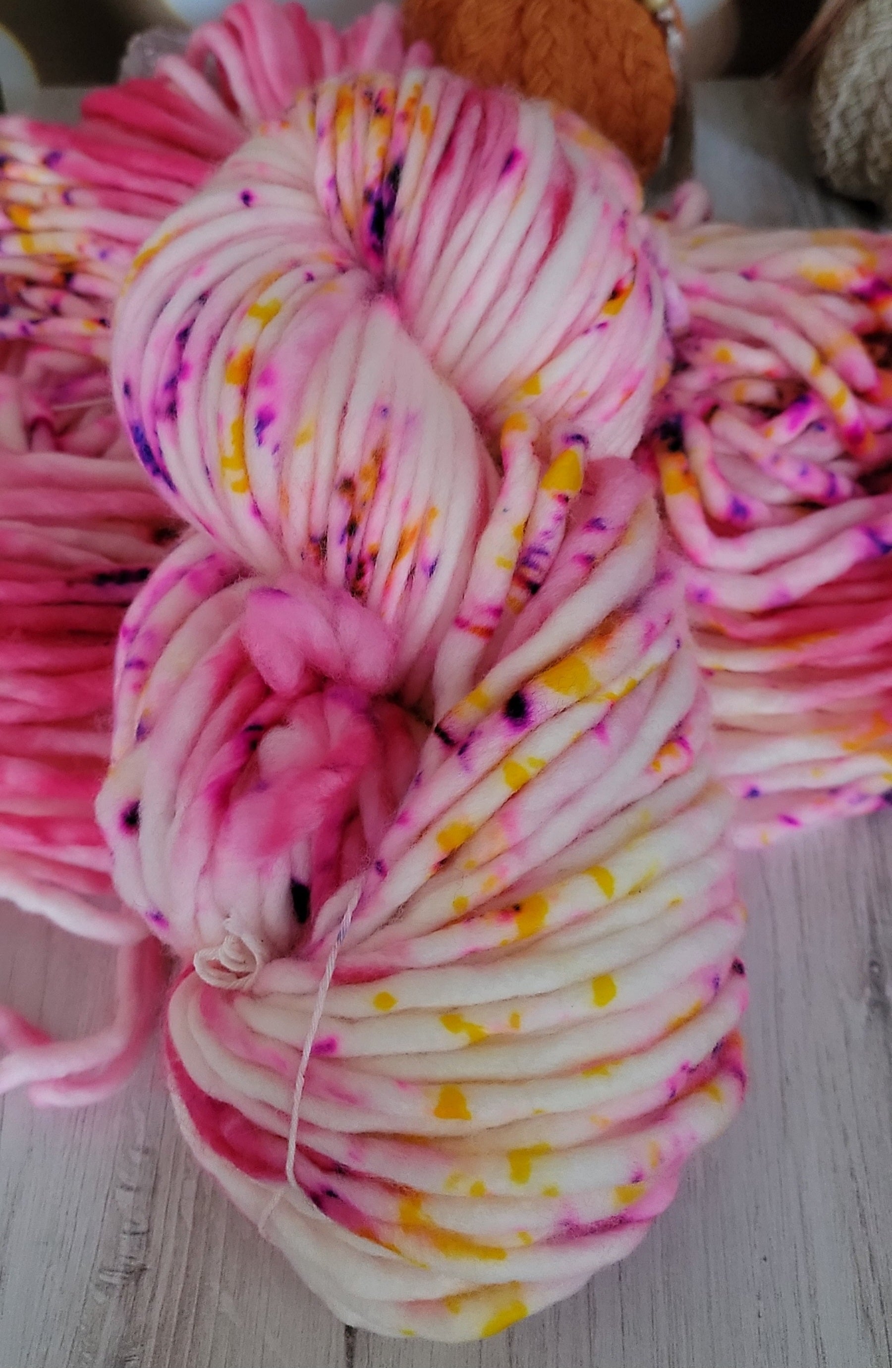 This is a listing for one skein of hand dyed super bulky weight, 100% Superwash Merino wool
