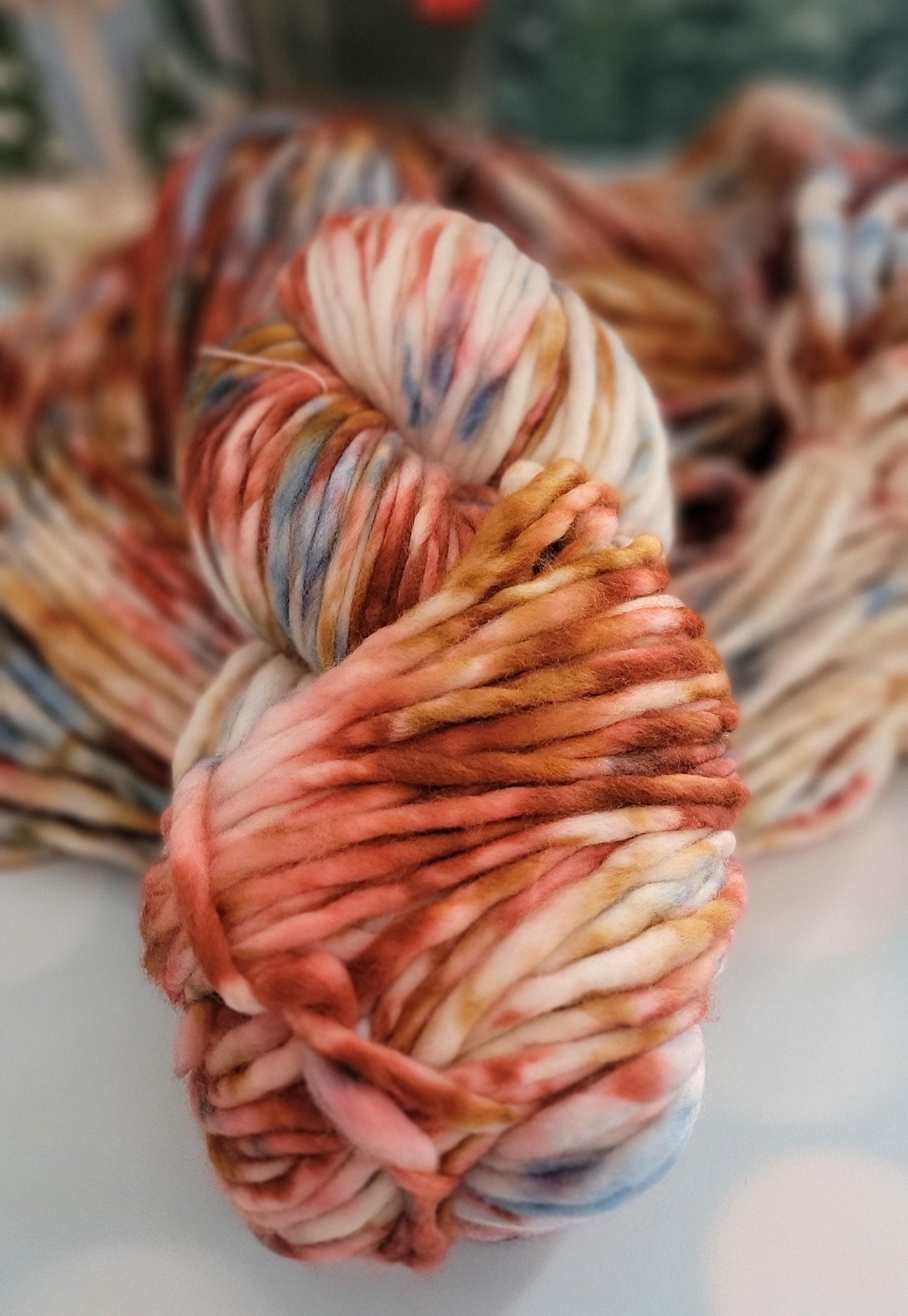 This is a listing for one skein of hand dyed super bulky weight, 100% Superwash Merino wool