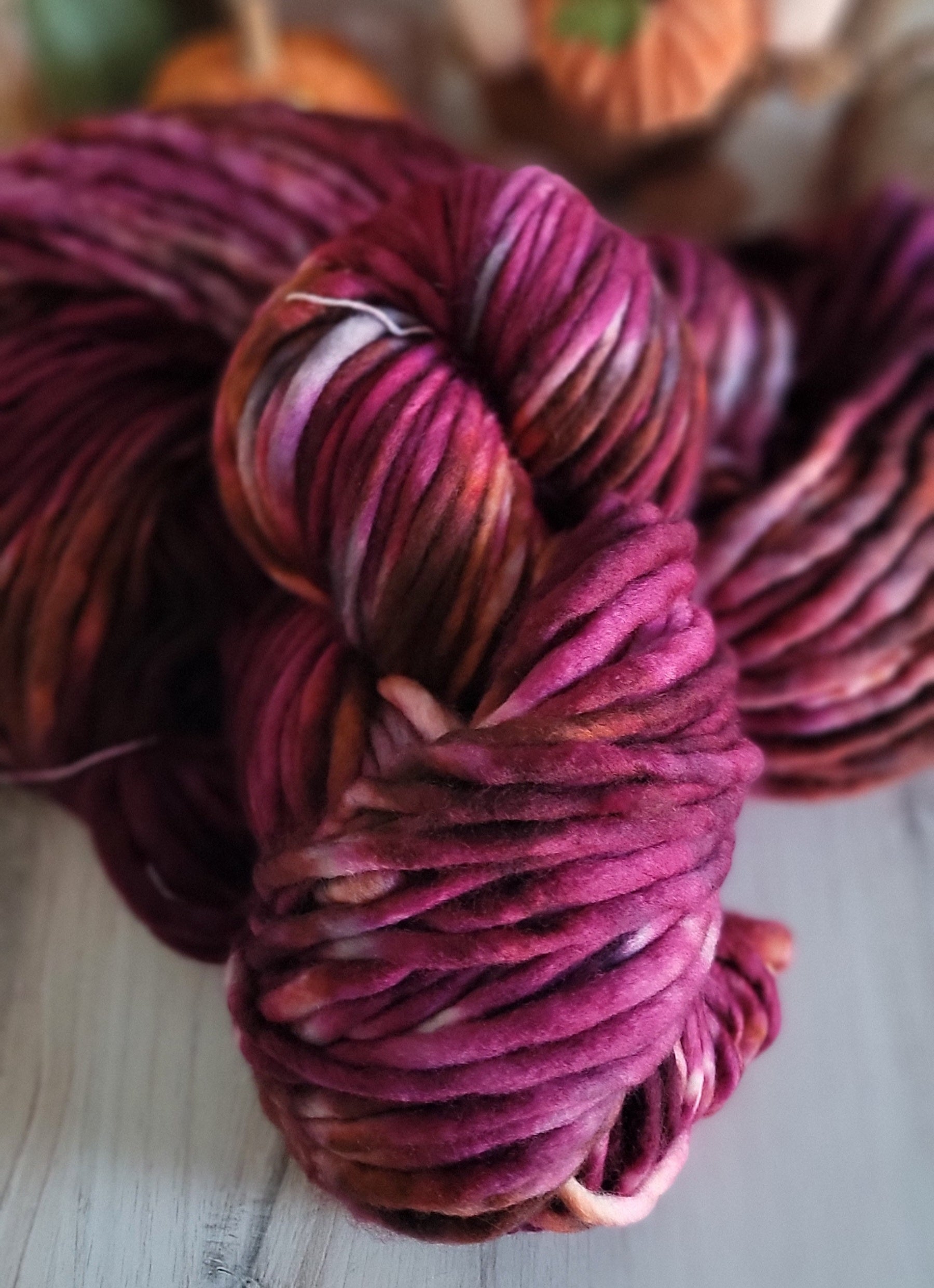This is a listing for one skein of hand dyed super bulky weight, 100% Superwash Merino wool