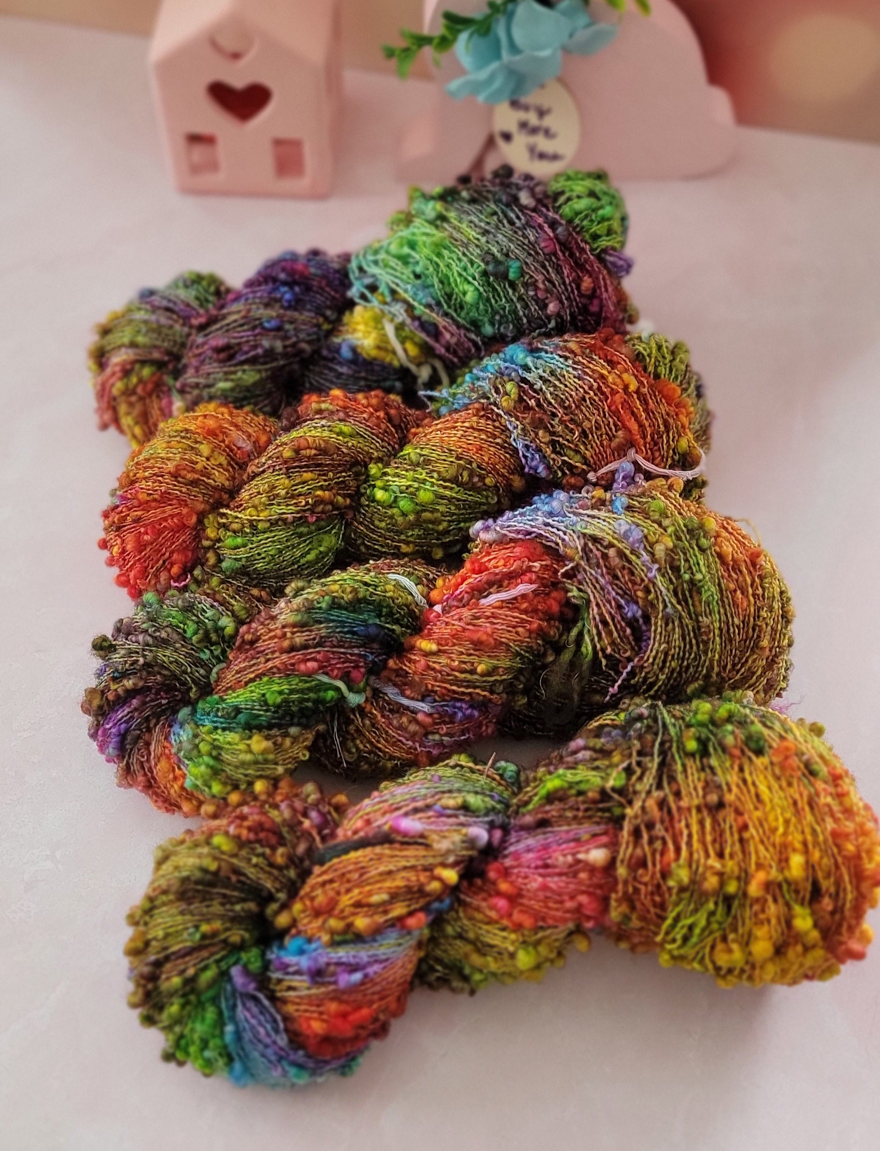 This listing is for one skein of hand dyed slub weight yarn.