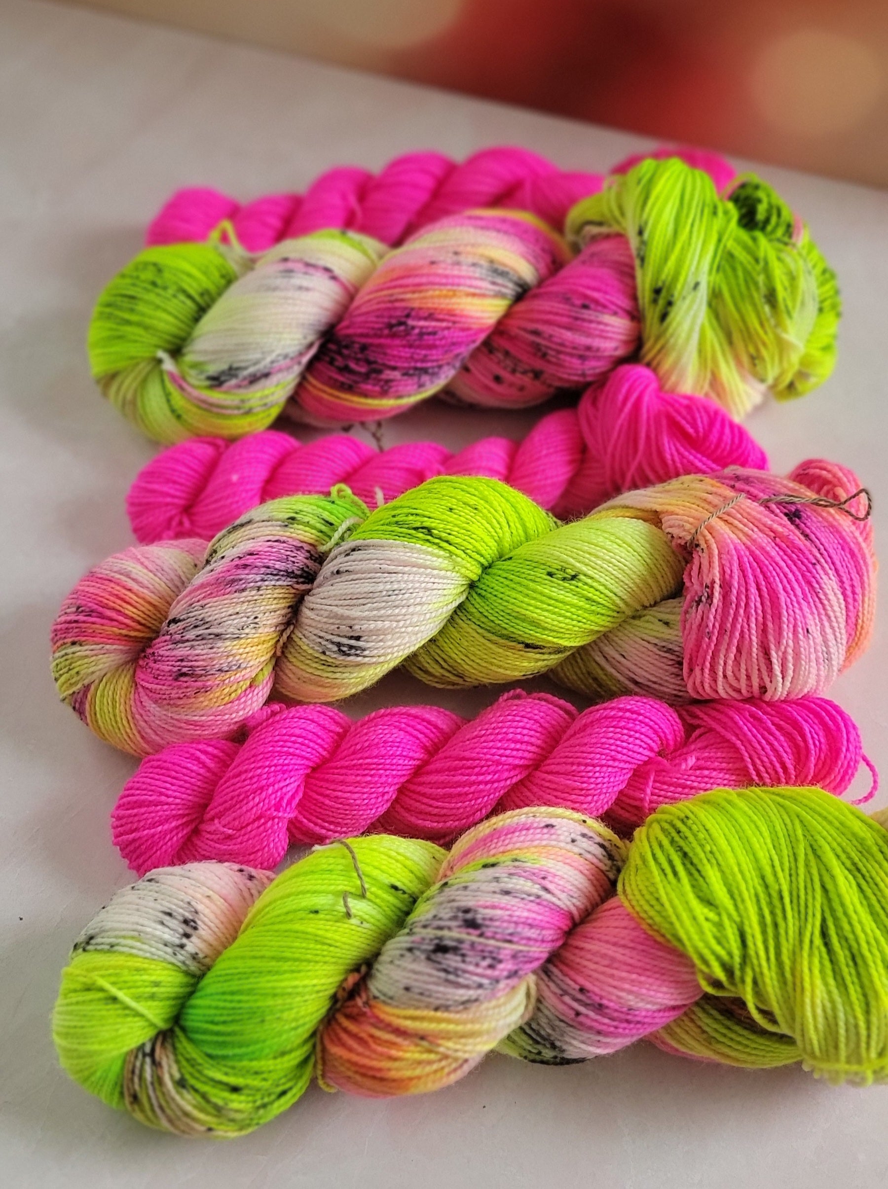 This listing is for one 100g skein of sock weight yarn and one 20g mini skein of sock weight yarn