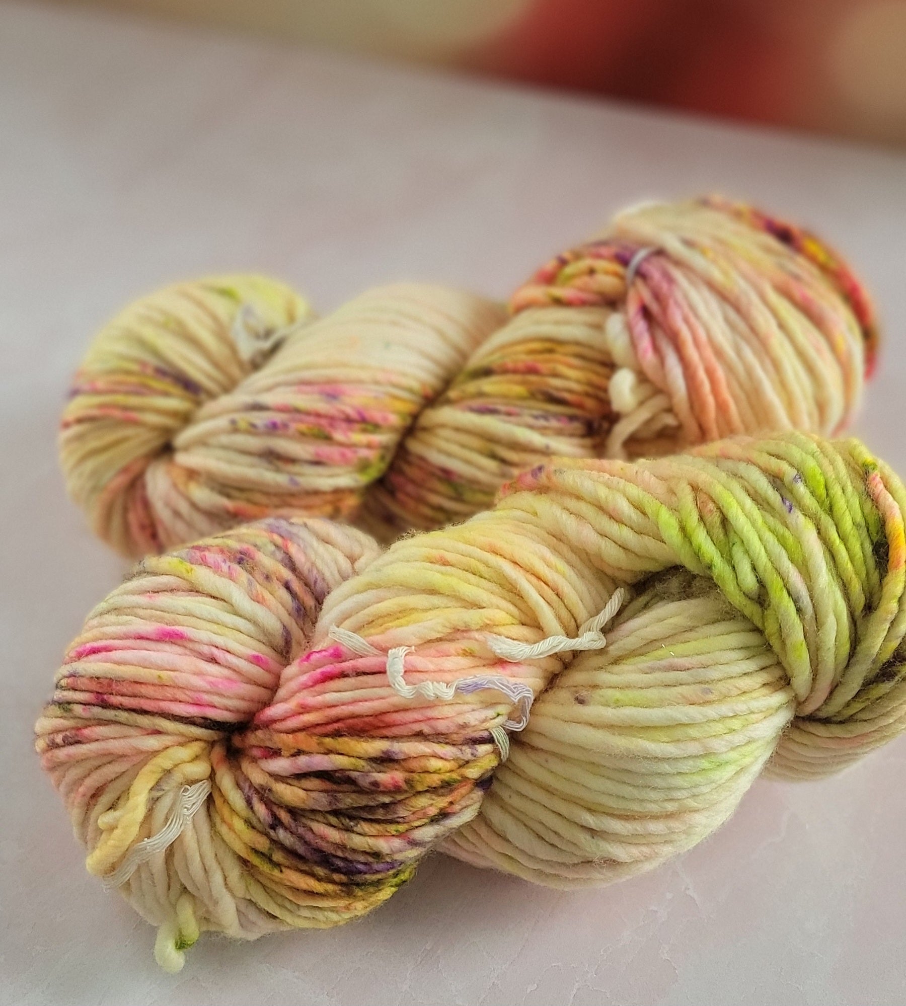 This listing is for one skein of hand dyed super bulky LITE weight, Superwash Merino